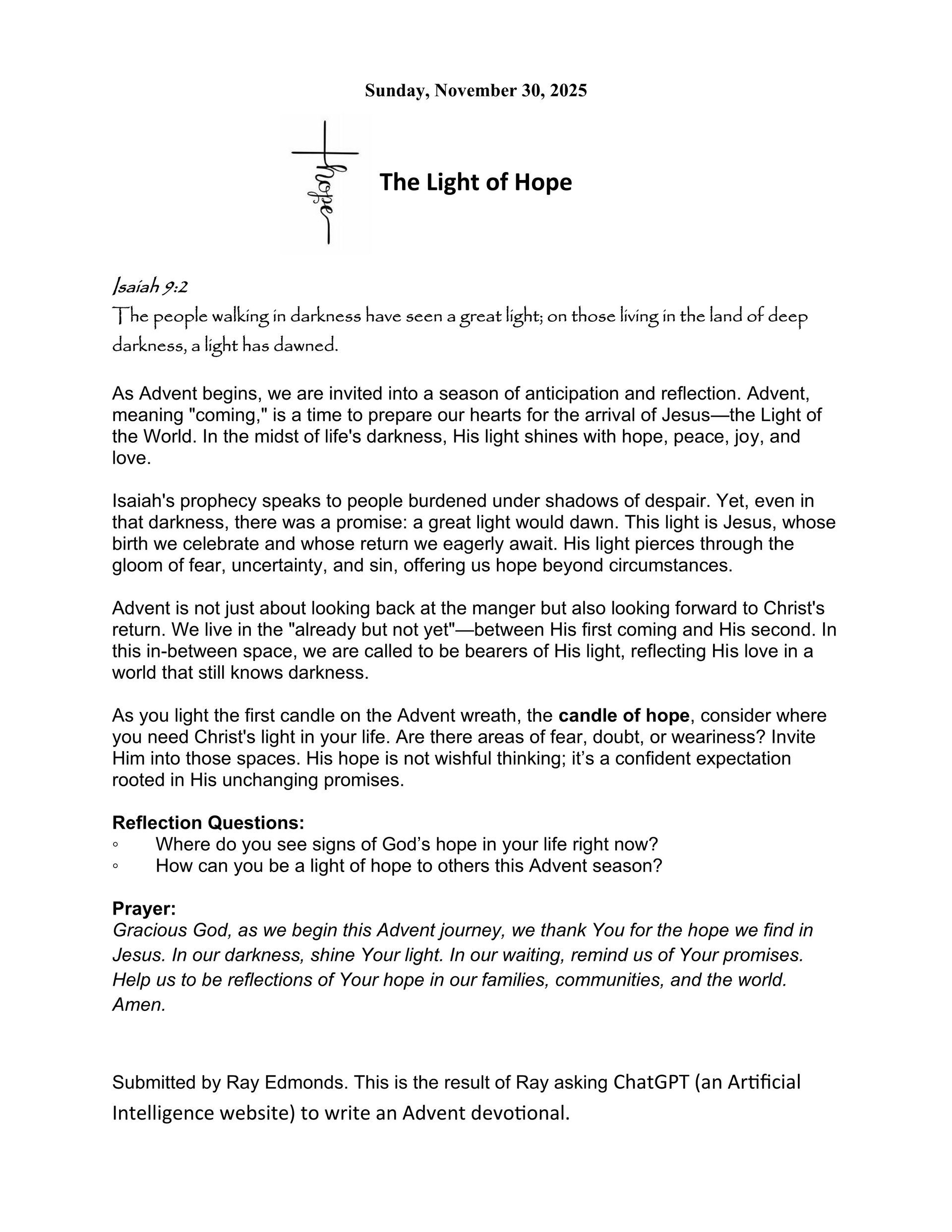 2025 Advent Devotional: November 30