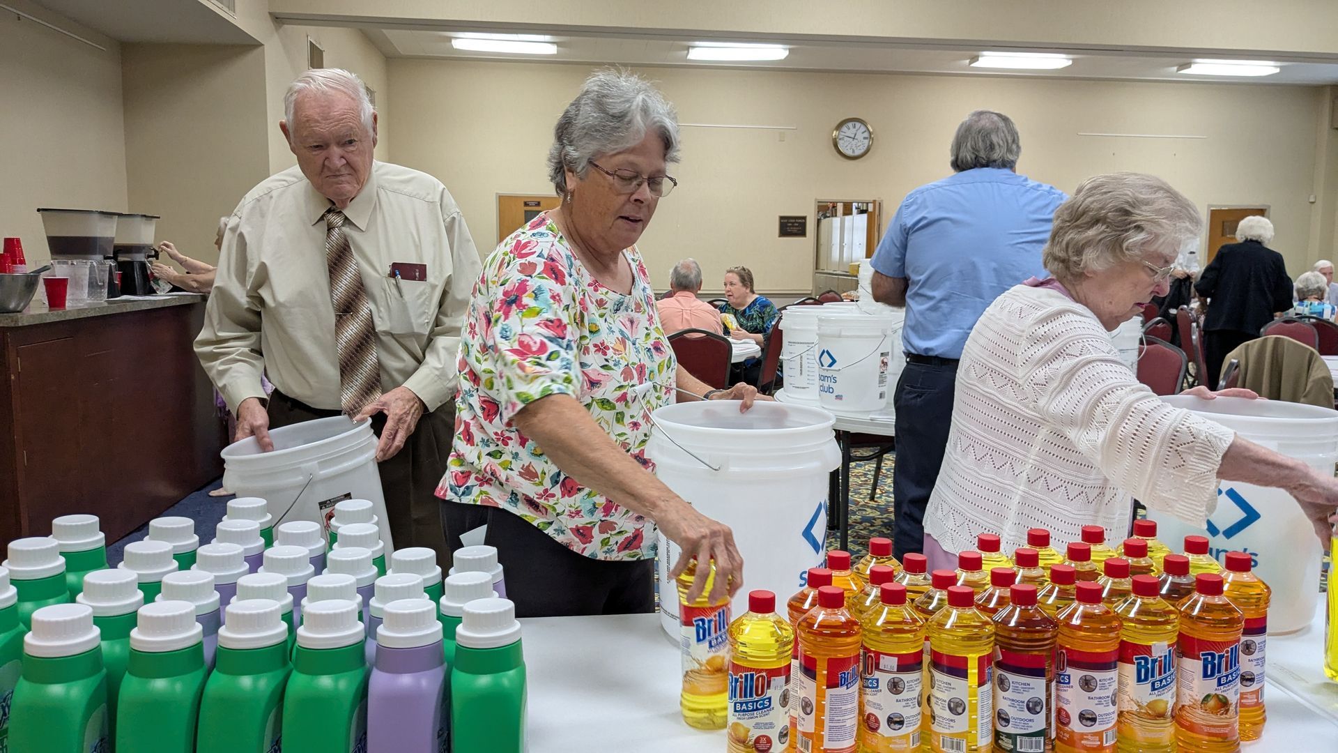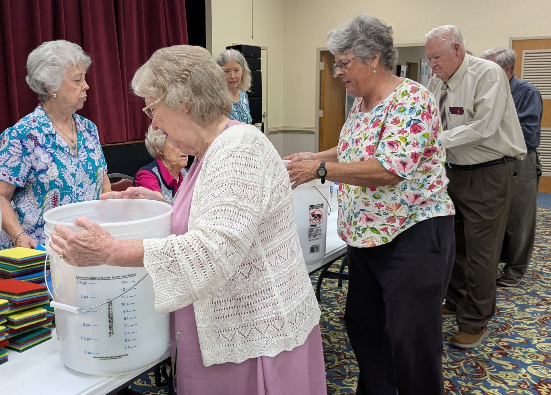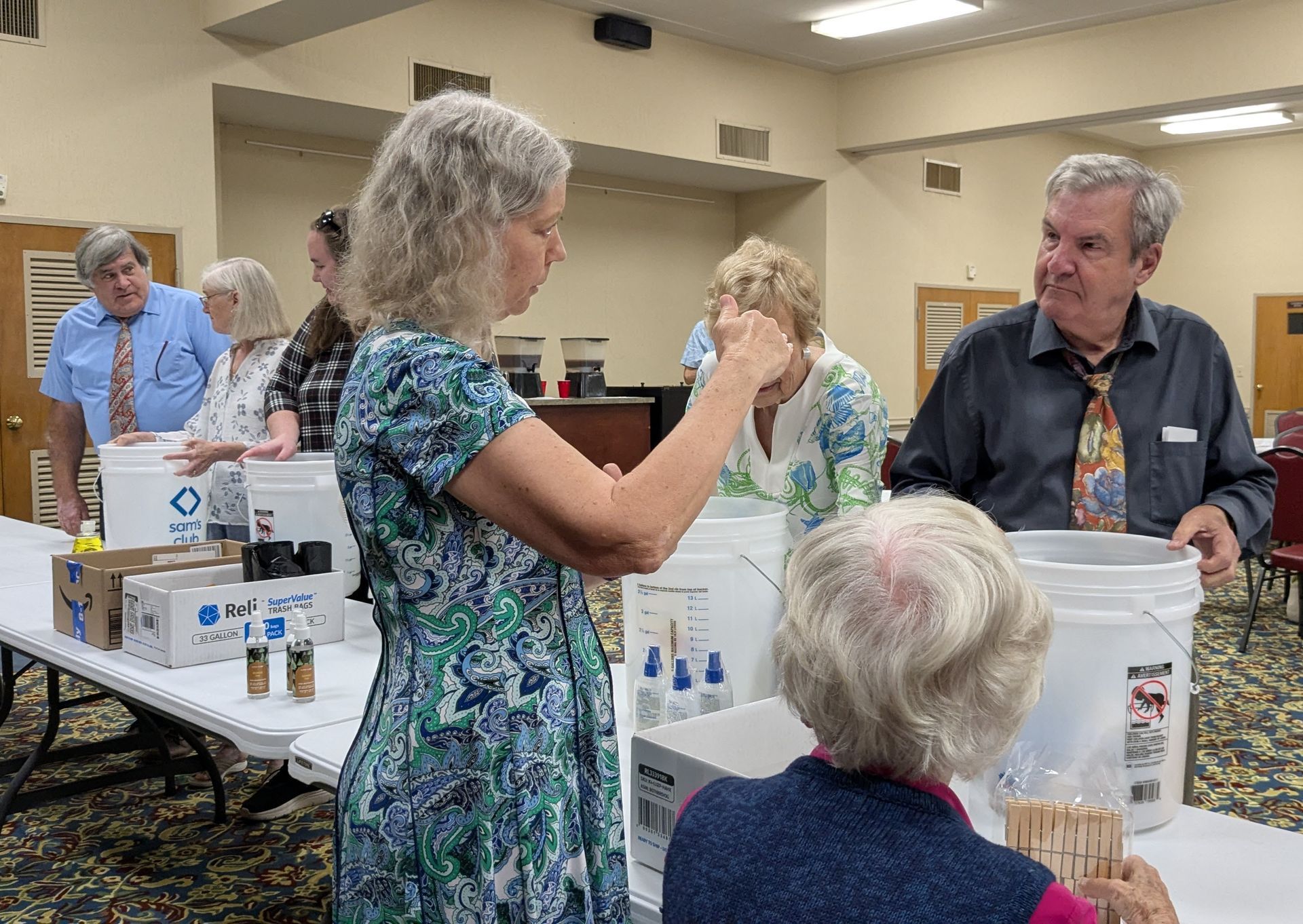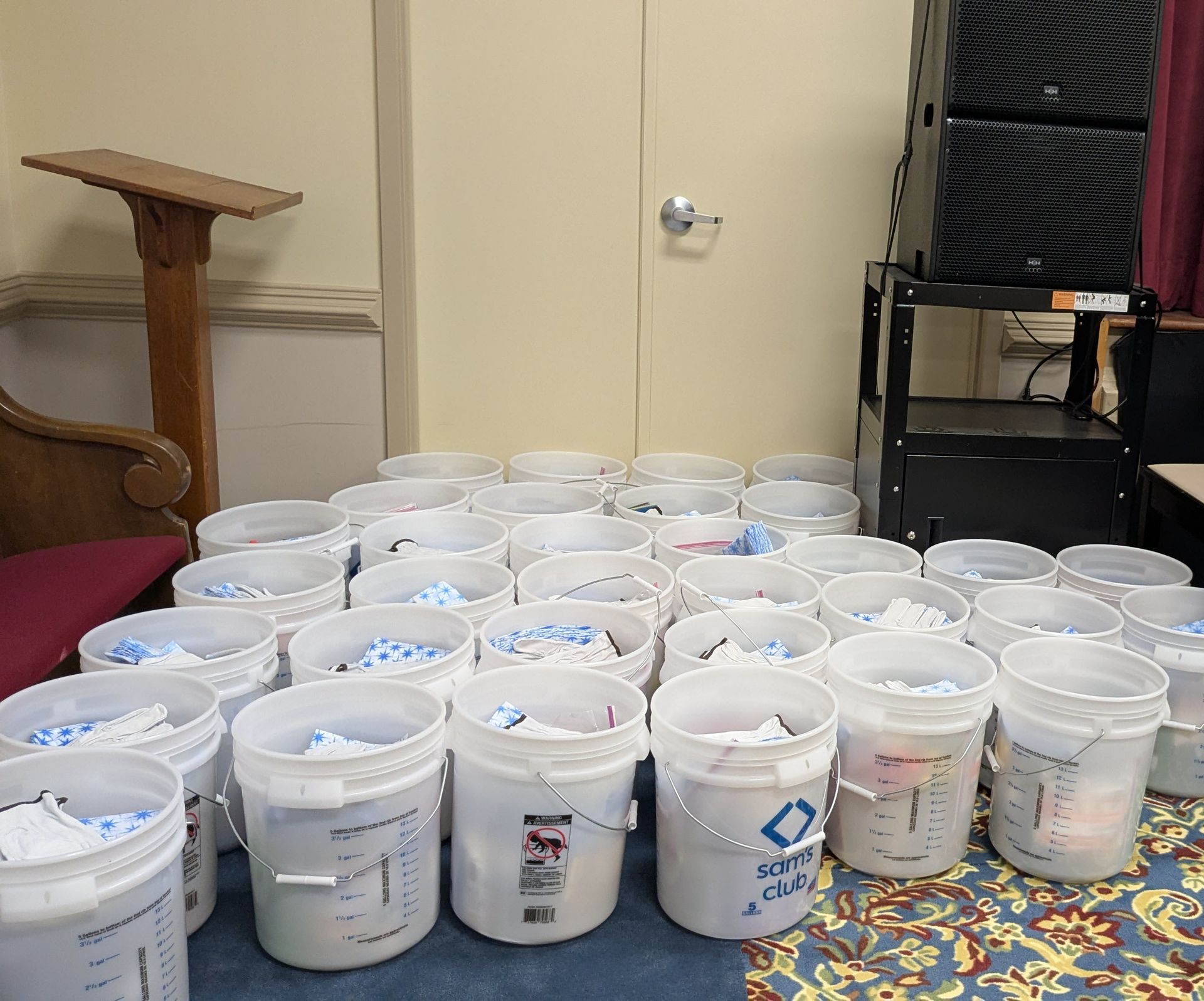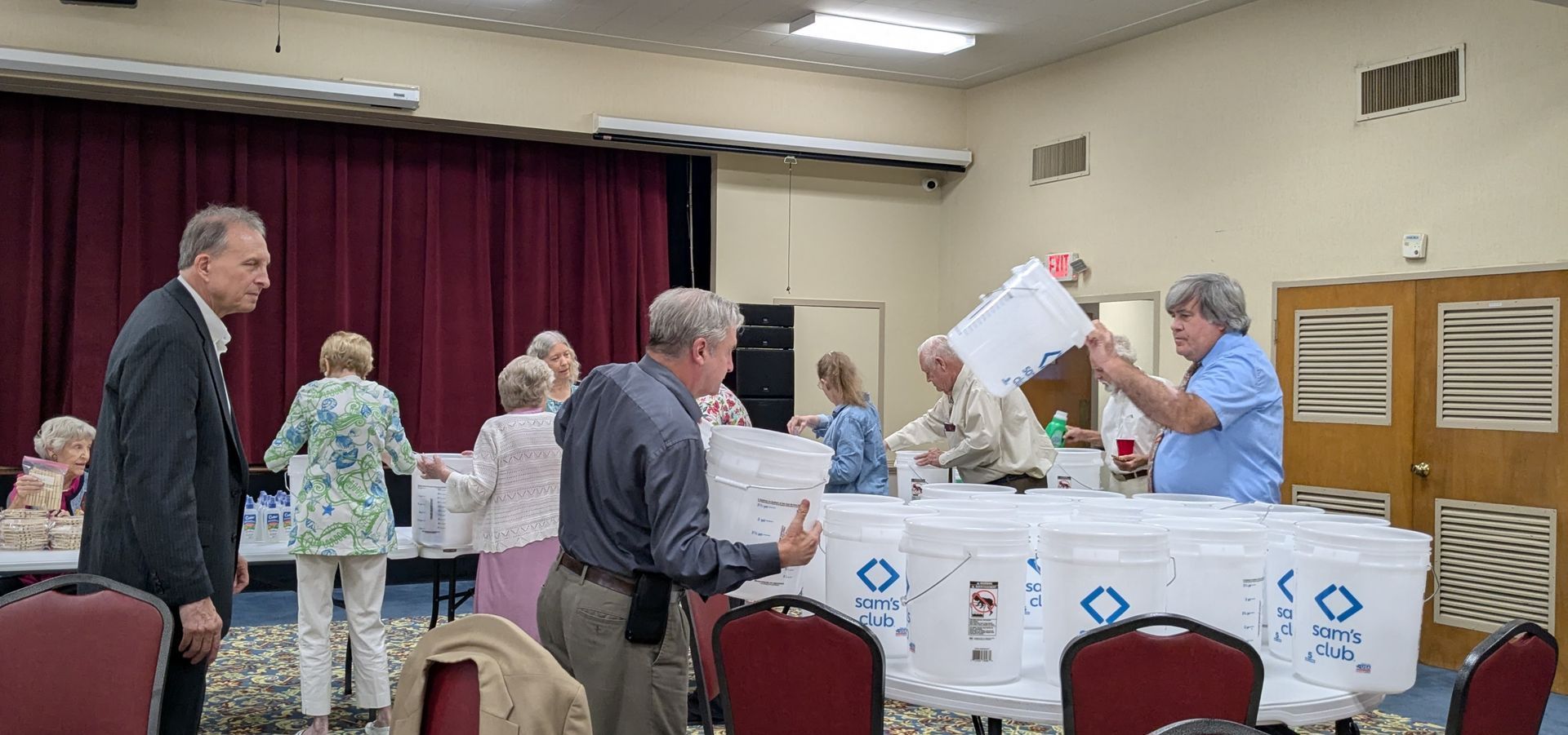 On July 27, following the Christmas in July worship service and congregational luncheon, 35 flood/cleaning buckets were assembled as a churchwide project for Outreach. These buckets include supplies that are greatly needed for cleanup in areas which have suffered major flooding. They will go to the United Methodist Committee on Relief (UMCOR) when the District is ready to receive them.