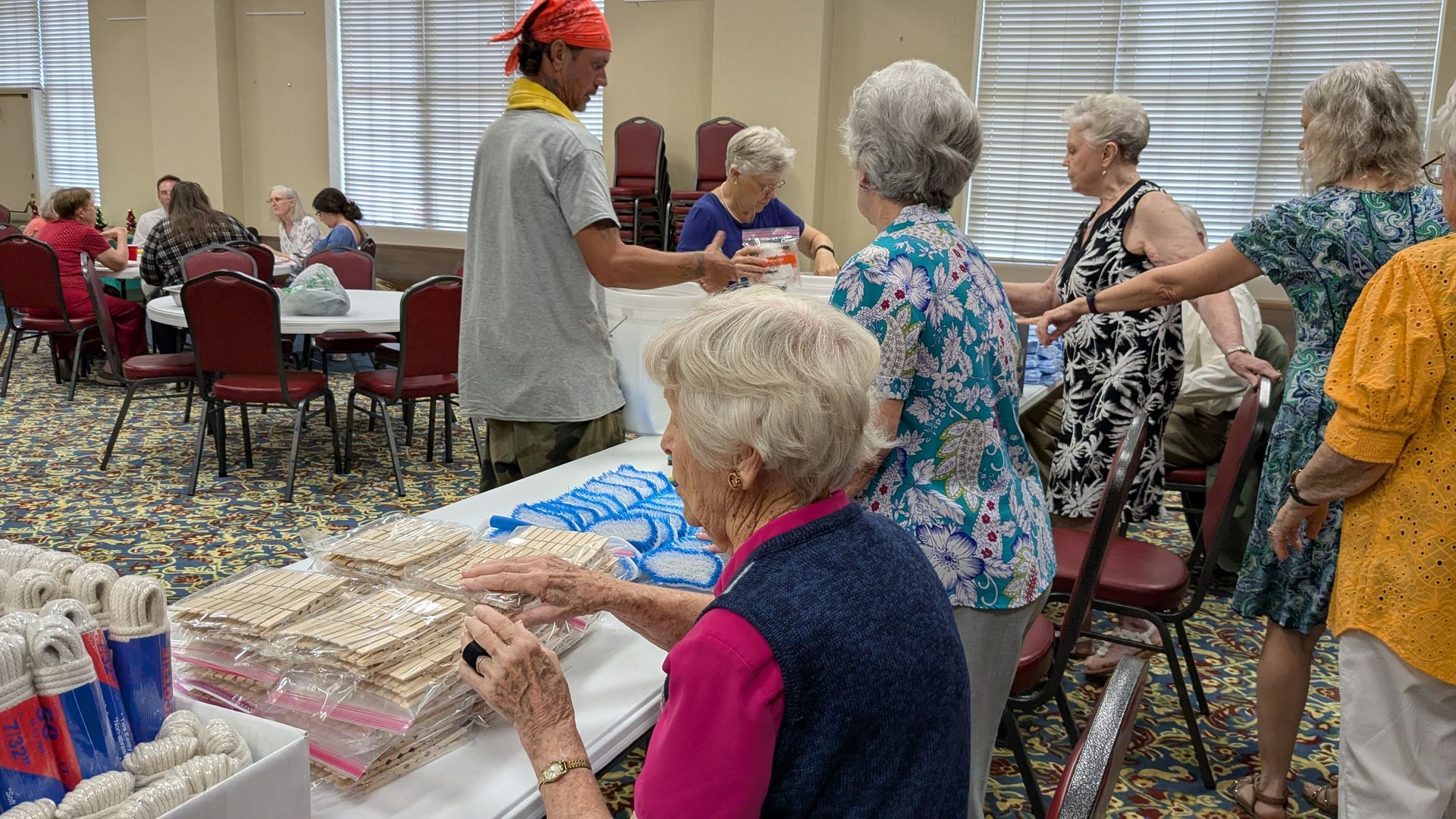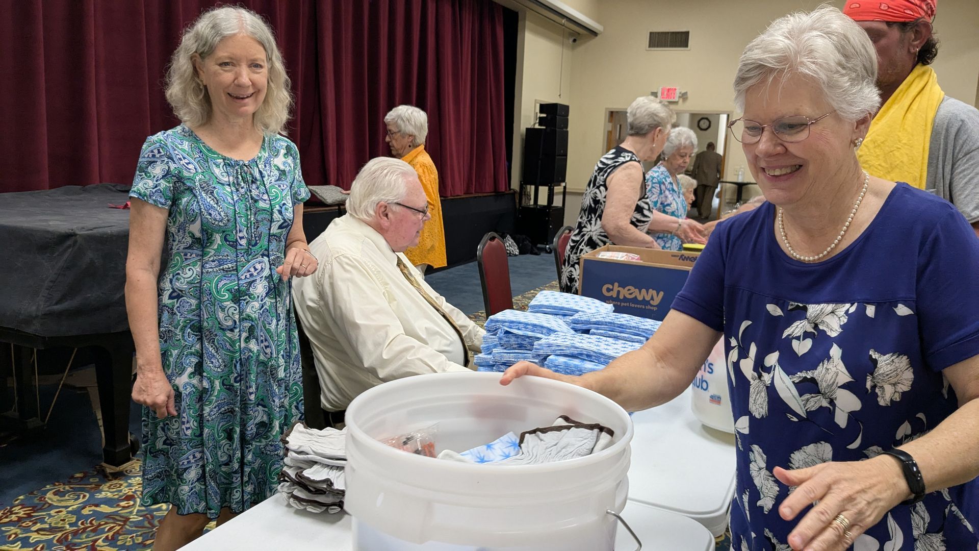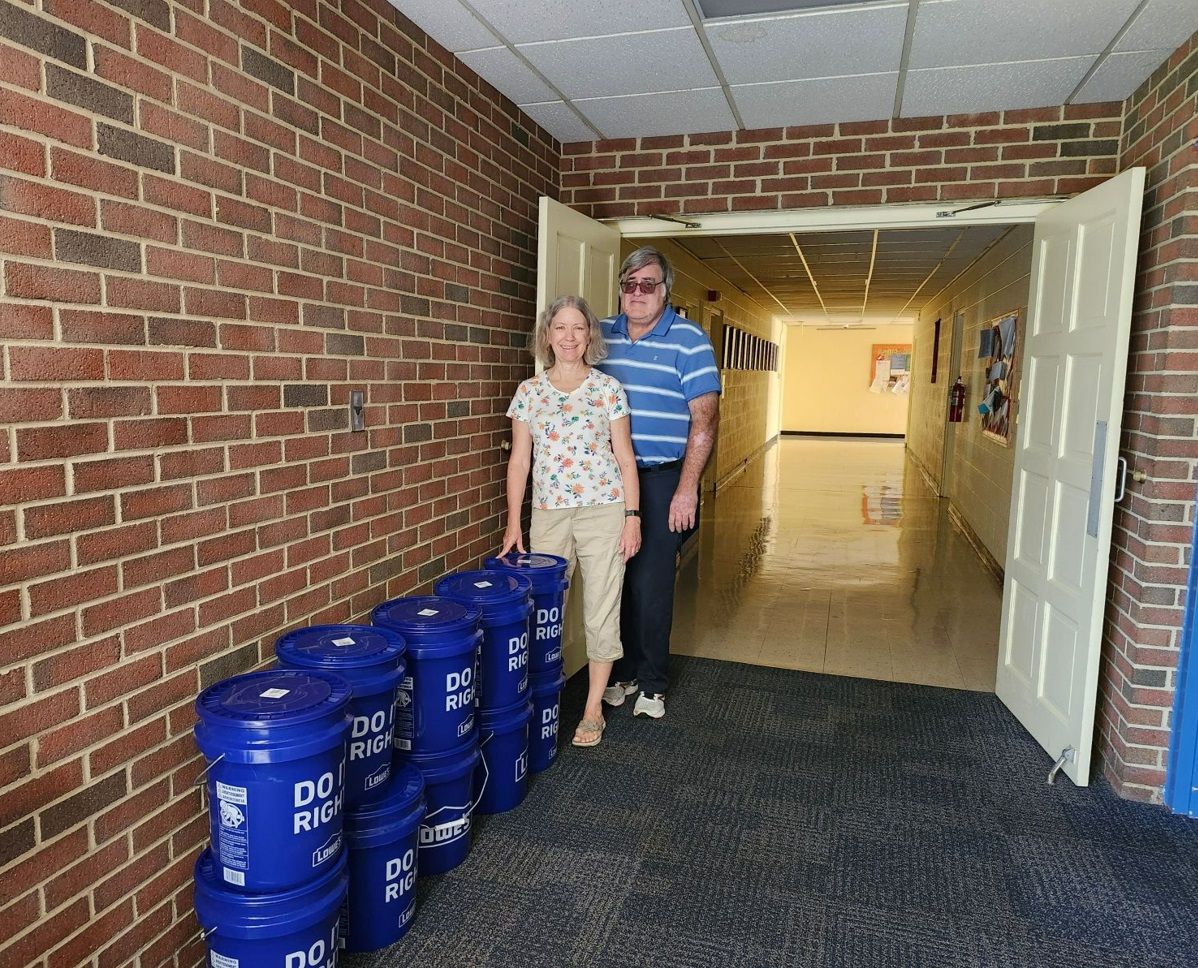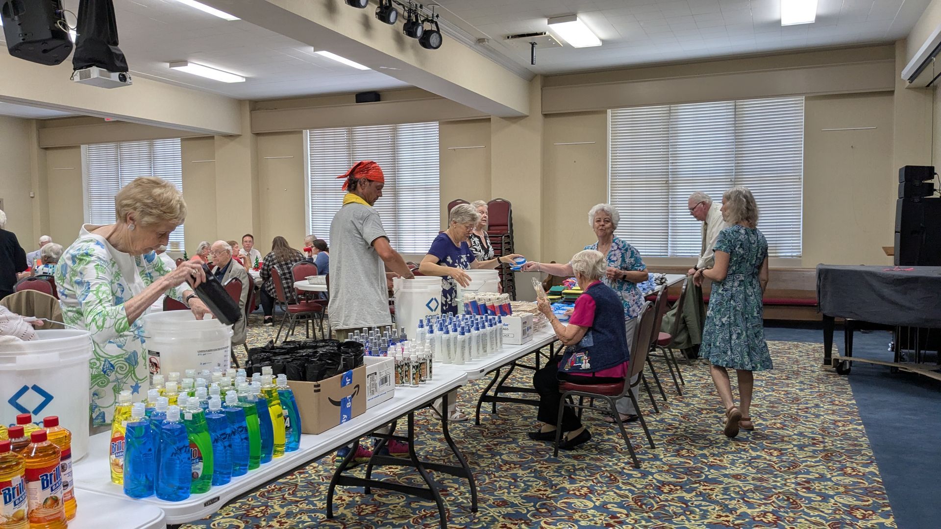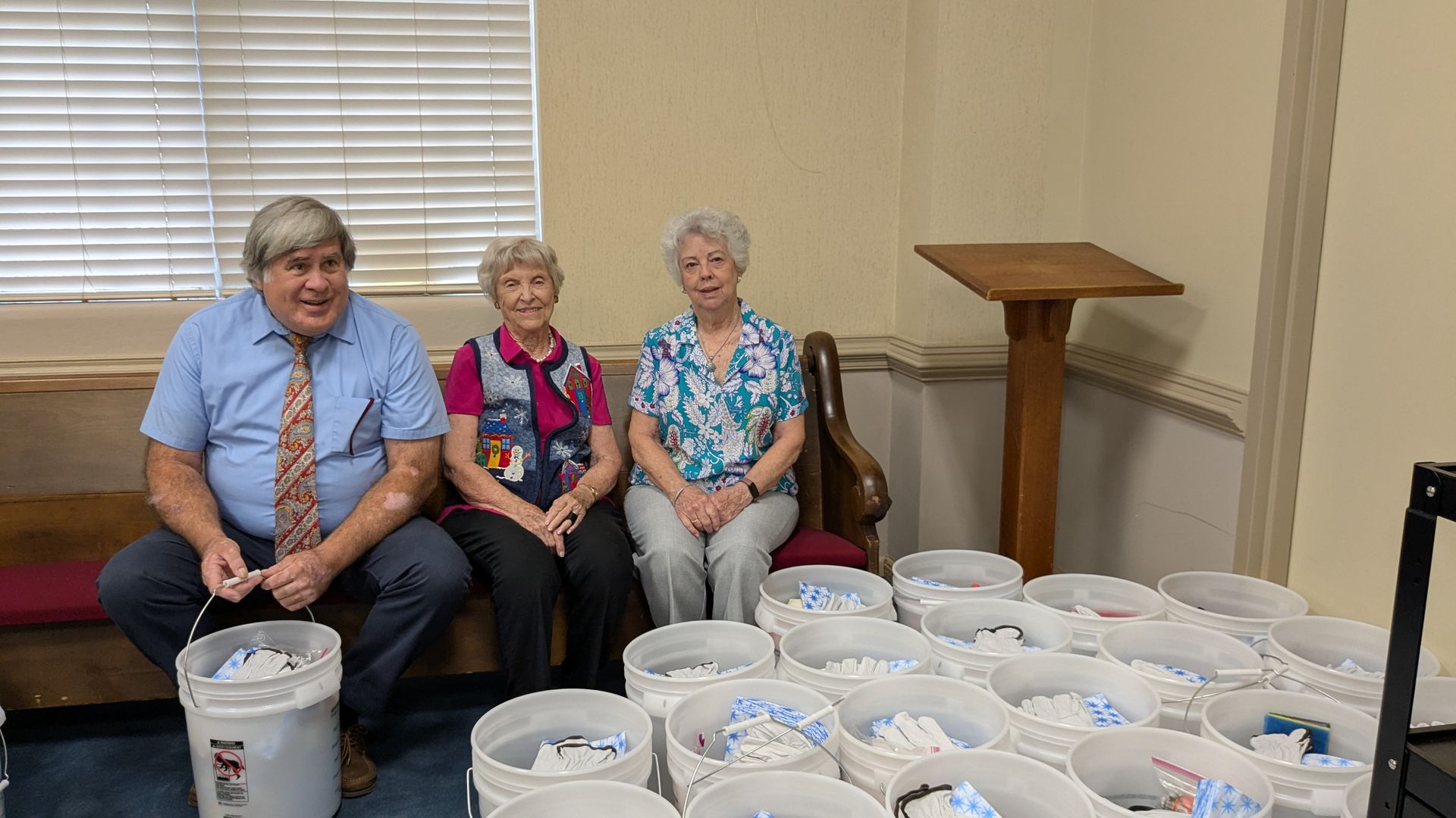On July 27, following the Christmas in July worship service and congregational luncheon, 35 flood/cleaning buckets were assembled as a churchwide project for Outreach. These buckets include supplies that are greatly needed for cleanup in areas which have suffered major flooding. They will go to the United Methodist Committee on Relief (UMCOR) when the District is ready to receive them.